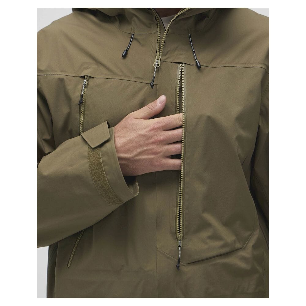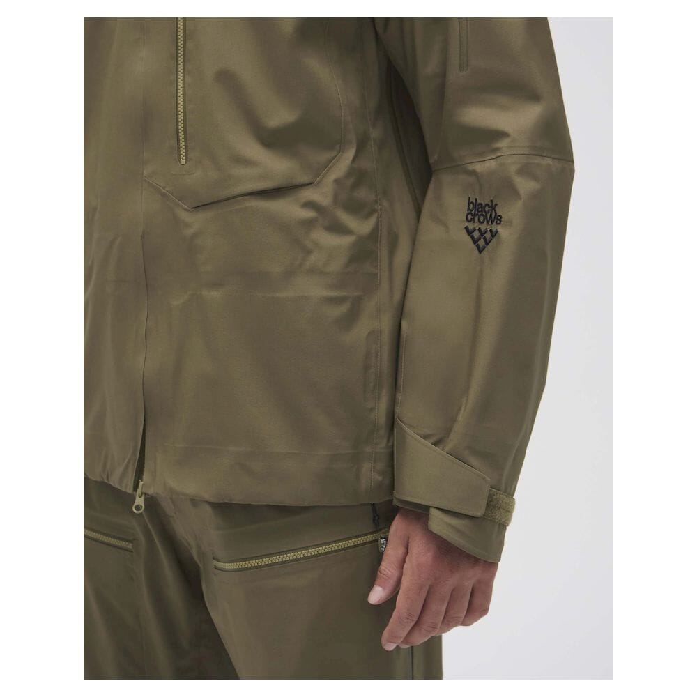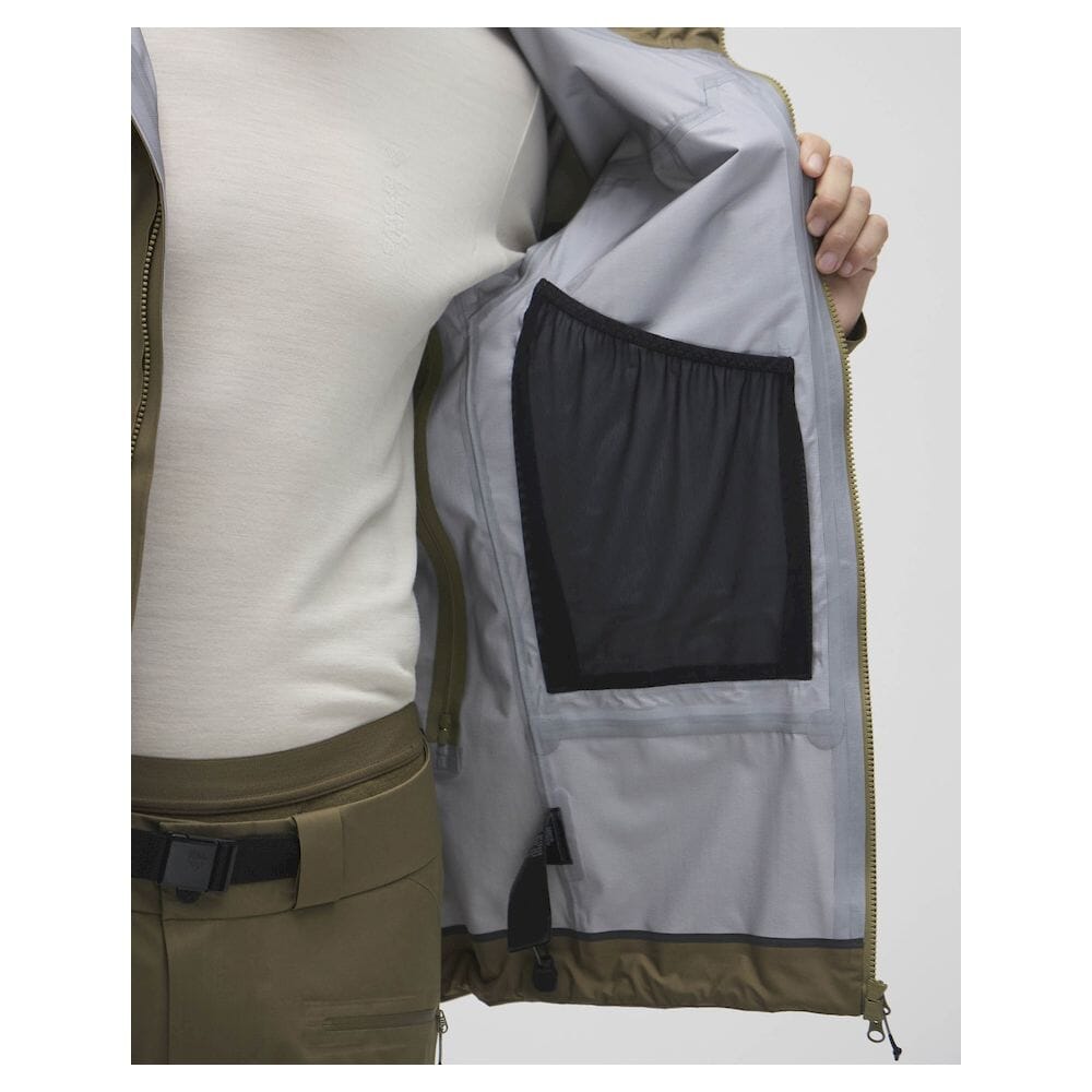 Den fullt justerbare, hjelmkompatible hetten med Cohaesive®-stramming gir pålitelig beskyttelse i røft vær, mens toveis YKK Aquaguard® frontglidelås sikrer enkel ventilasjon og bruk med sele eller ryggsekk. Lange ventilasjonsglidelåser under ermene øker luftgjennomstrømmingen under oppstigning, og flere funksjonelle lommer gir sikker oppbevaring av skipass, telefon, sender/mottaker og utstyr.