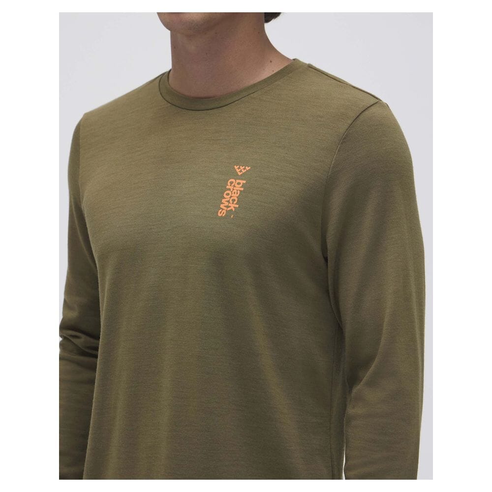 Men's Merino Long Sleeve Tee Olive Green er en allsidig langermet baselayer laget av 100 % merinoull. Den er naturlig myk, pustende og luktresistent – perfekt som innerlag for skikjøring i fjellet, på turer i variert terreng eller til hverdagsbruk på kalde dager. En del av Black Crows sitt klassiske skibekledningsutvalg, med det ikoniske logoet på brystet.