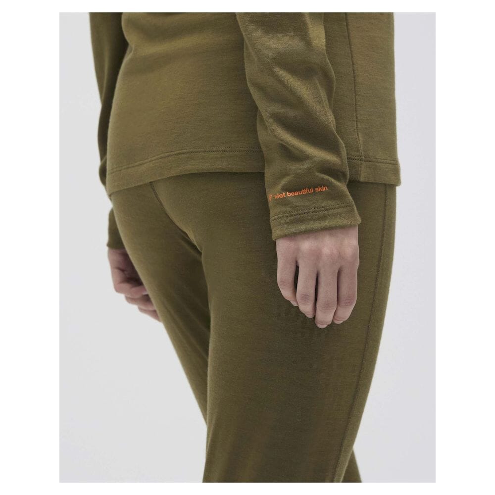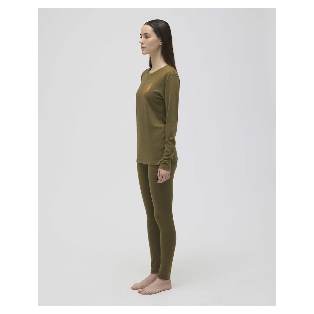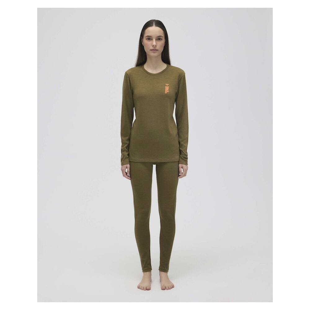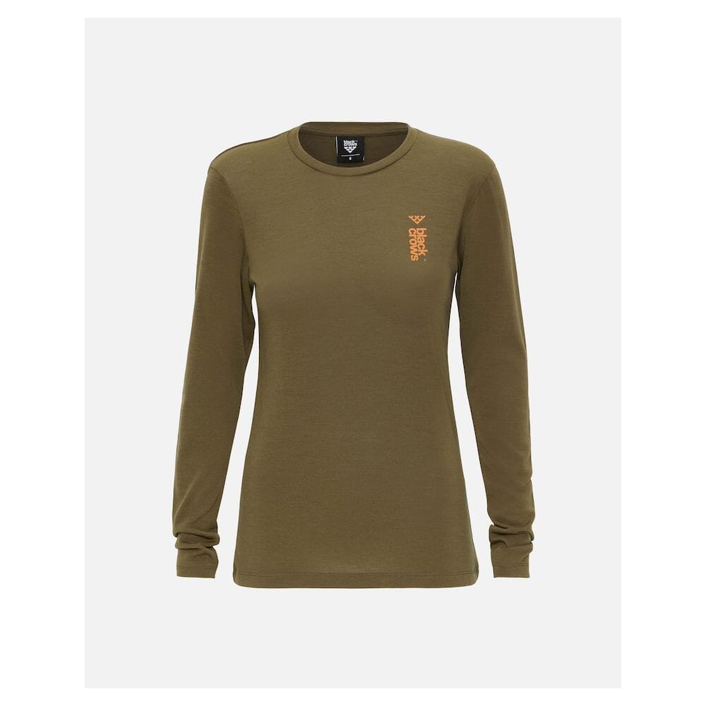 Women's Merino Long Sleeve Tee Olive Green er en allsidig langermet baselayer laget av 100 % merinoull. Den er naturlig myk, pustende og luktresistent – ideell som innerlag for skikjøring i fjellet, toppturer eller andre aktiviteter i kaldt vær. En del av Black Crows sin ikoniske kolleksjon for frikjørere, med det gjenkjennelige logoet på brystet.