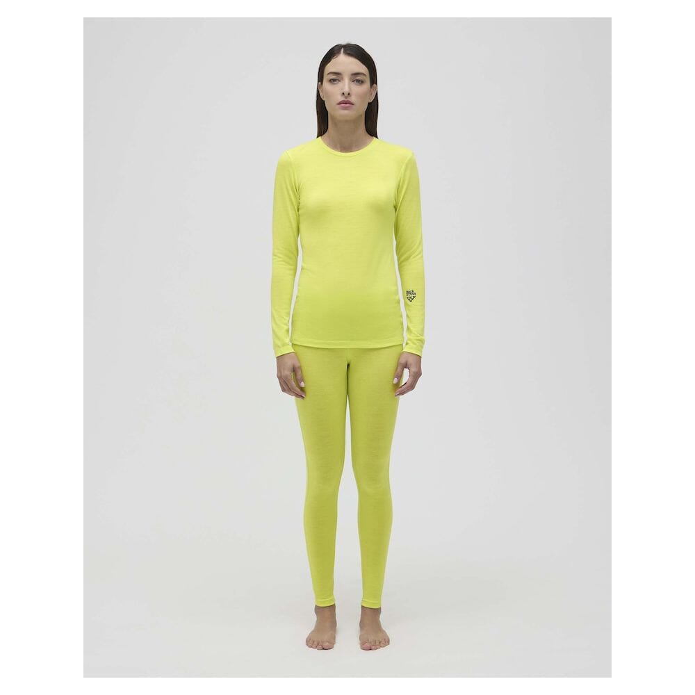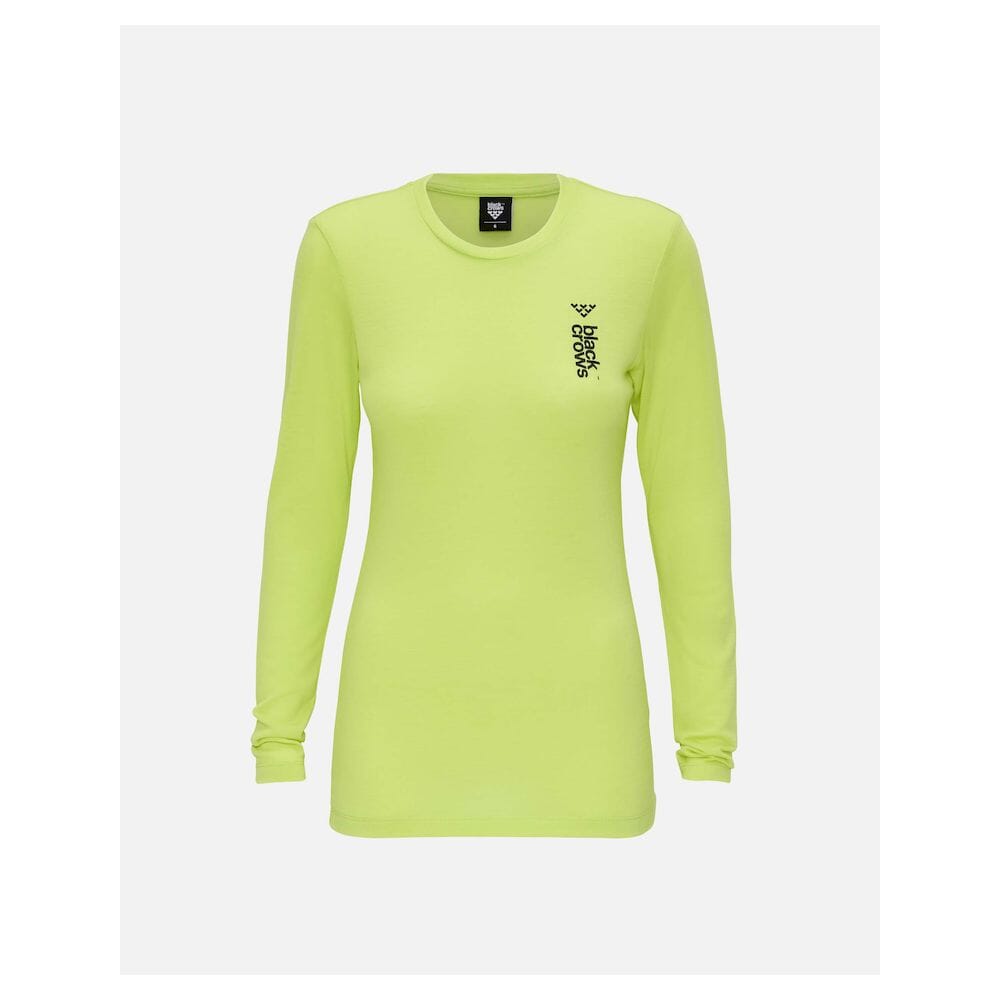 Women's Merino Long Sleeve Tee Neon Yellow er en allsidig langermet baselayer laget av 100 % merinoull. Den er naturlig myk, pustende og luktresistent – ideell som innerlag for skikjøring i fjellet, toppturer eller andre aktiviteter i kaldt vær. En del av Black Crows sin ikoniske kolleksjon for frikjørere, med det gjenkjennelige logoet på brystet.
