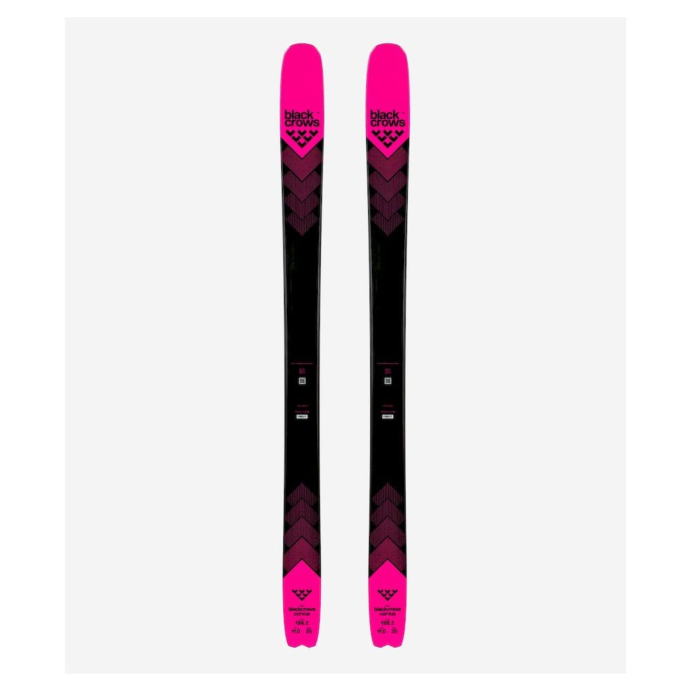 Corvus er den originale Black Crows-skien, grunnleggeren, den svarte hingsten. Født vinteren 2007-2008, representerer den essensen av Black Crows' kjøreegenskaper: hver dag, alle typer snø, alle terreng – ren skiglede og lekne svinger. Her er den femte versjonen av moderskipet. Og den har en helt ny form: klassisk spenn, rette linjer, to progressive rockere, et snev av titanal, et hint av alpint – en ny råtass for storfjellskjøring. Laget for å nyte store svinger, høy fart og smidige bevegelser i bratte renner. Denne versjonen markerer svartfuglens tilbakekomst til toppen av frikjøring i stort terreng.