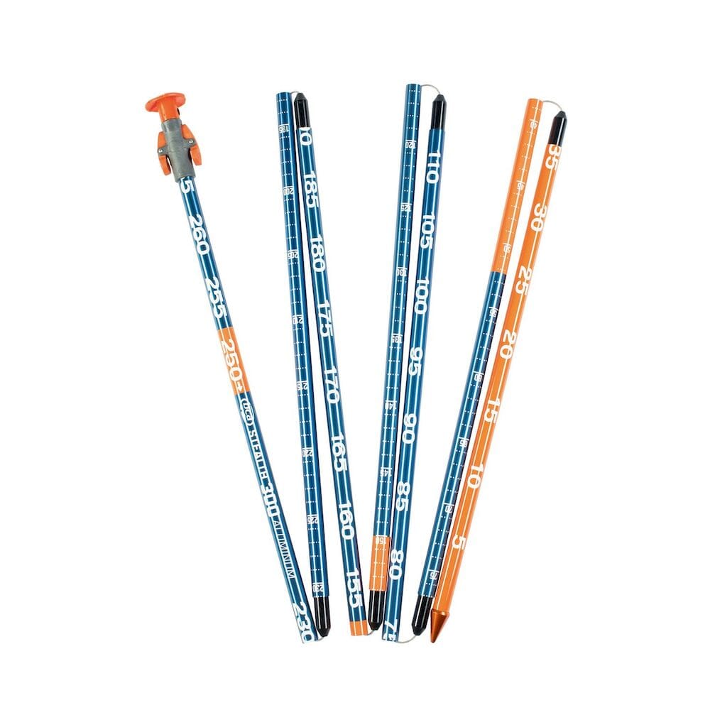 BCA Stealth 270 er en kompakt og sterk aluminium søkestang på 1.3 cm i diameter. Stangen har laserprintet dybdemål i intervaller på 1 cm for nøyaktig måling ved graving av snøprofil. Den kraftige Quick-Lock låsingen i toppen låser raskt søkestangens ledd og holder den stødig og stiv, og en 1.5mm plastikk trekt wire øker slitestyrken og levetiden. Stealth 270 er 45 cm sammenslått, og 270 cm fult utstrekt. Vekt: 289 gram. BCA B-1 EXT er den mest solgte spaden i Bomber serien, og er en perfekt blanding av styrke, design og lav vekt. Spadebladets unike utforming og ovalt skaft i kombinasjon med 6061 aluminiumslegering gir svært god styrke, torsjonsstivhet, samt at det skjærer godt i hard og kompakt snø. Det ""halsløse"" skaftfeste gjør spaden nærmest ""ubrekkelig"" og lett å pakke i sekken. B-1 EXT har teleskopskaft som pakker 41 cm sammenslått og 73 cm utstrekt og er en mye brukt og anbefalt skredspade blant fjellfolk og skikjørere.