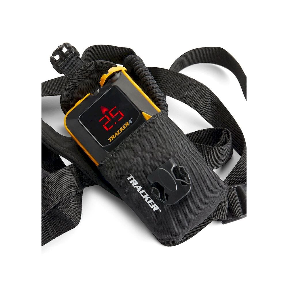 Tracker 4 har en komfortabel bæresele og batterier følge med. Vekt: 215 gram (u/sele).
