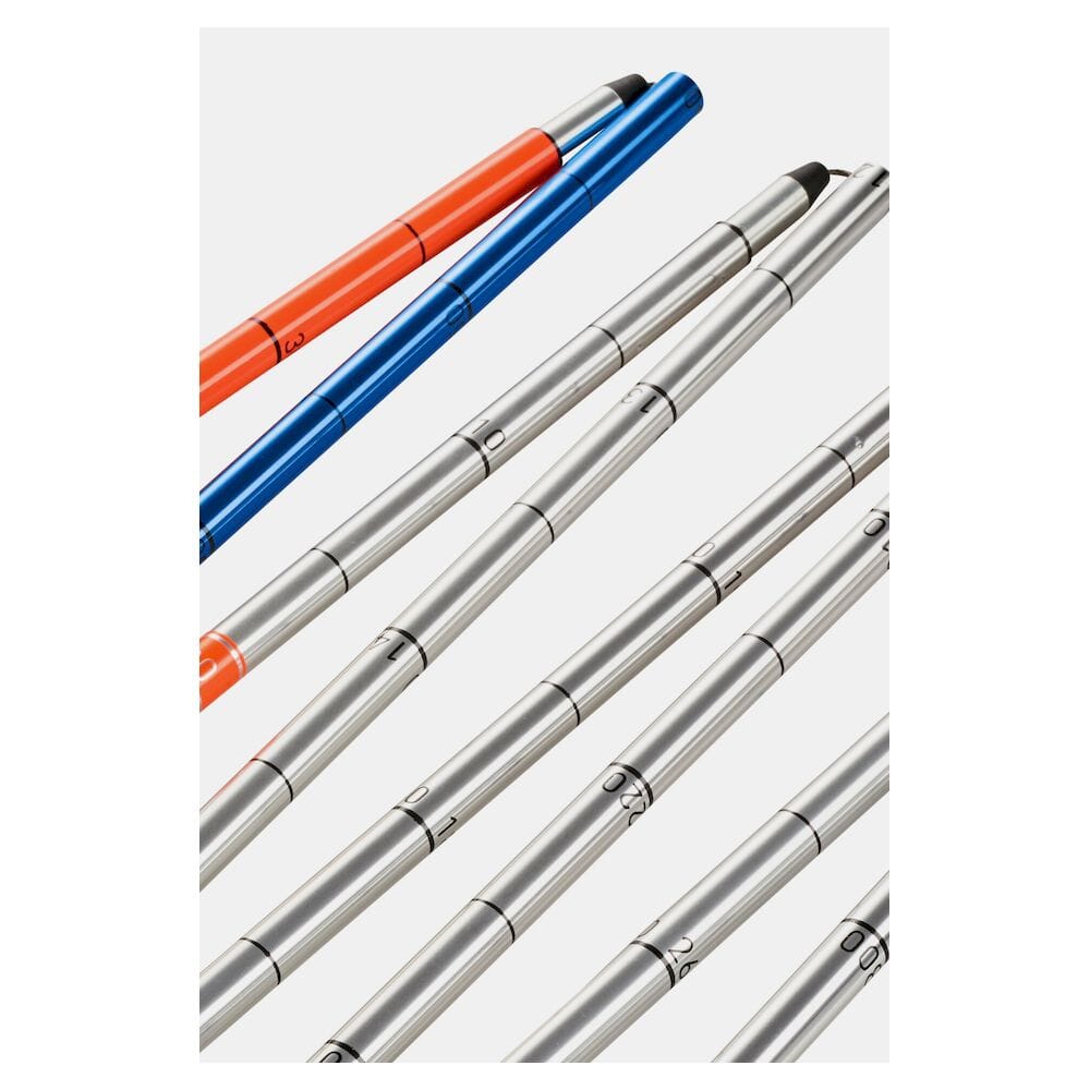 ALU 320+ PFA er utstyrt med ORTOVOX sitt visuelle guidesystem for søkestenger. Tydelige dybdemarkeringer, klar 1-meters markering og kontrastfarget skala gjør det enkelt å lese begravelsesdybde og tilpasse gravestrategien.