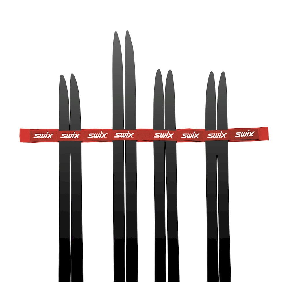Stropp for lagring av ski på vegg. Har plass til 4 par alpinski eller 8 par langrennsski.