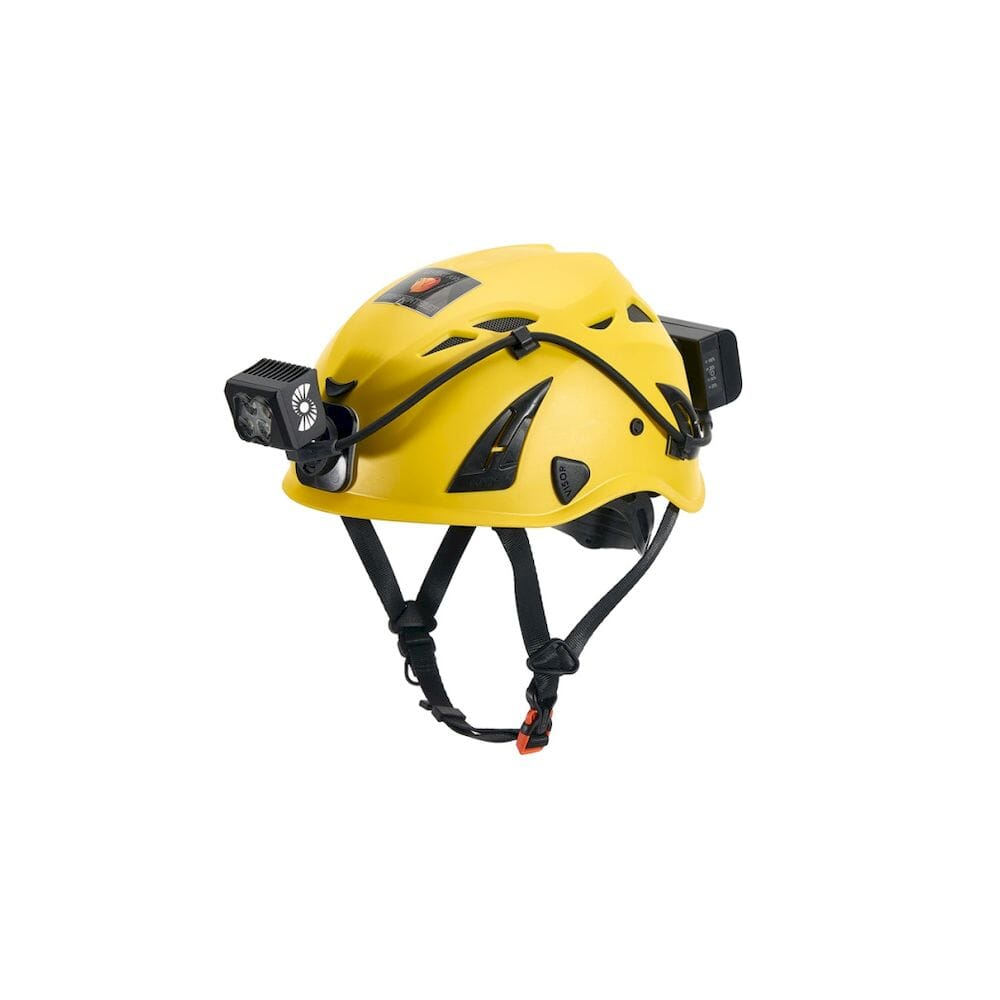 Lykthodet og batteriet bruker vårt egenutviklede hurtigfeste – basert på Garmin-prinsippet, men med fire låsearmer for ekstra sikkerhet. Dette gir svært rask overgang mellom hodestrikk og hjelm.