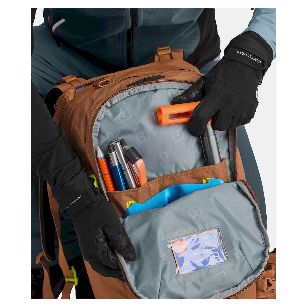 HAUTE ROUTE 32 har et romslig hovedrom som kan nås både fra toppen og bak, samt et separat sikkerhetsrom for rask tilgang til nødutstyr. Tau kan pakkes og pakkes ut uten å åpne hele sekken.
