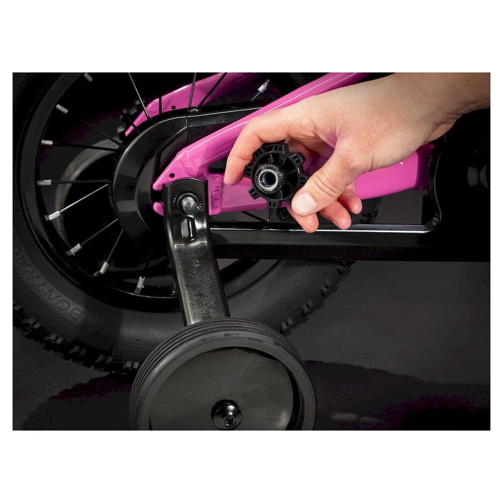 Denne barnevennlige sykkelen har et håndtak integrert direkte i setet så du kan guide barnet ditt mens det sykler, pluss en pedalbrems og verktøyfrie støttehjul som kan monteres og fjernes ved å vri på et strammehjul. Pluss at den lette aluminiumsrammen er enkel å manøvrere for barnet ditt.