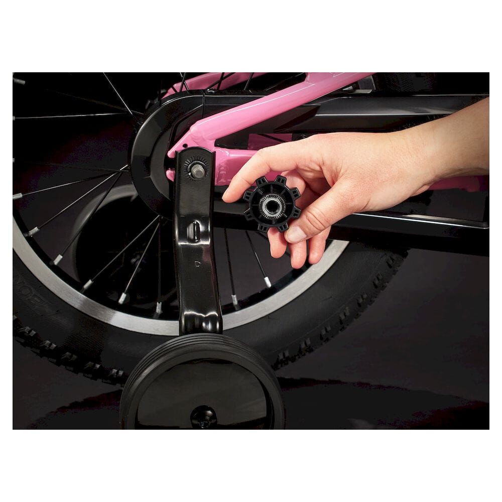 Denne barnevennlige sykkelen har en lettvektsramme av Alpha Silver Aluminum, et gir og to håndbremser med barne-tilpassede bremsehendler som er enkle å trekke. Pluss verktøy-frie støttehjul som kan monteres og fjernes ved å skru på et strammehjul, og et sete med et integrert håndtak som kan byttes ut med et integrert feste for baklykt.