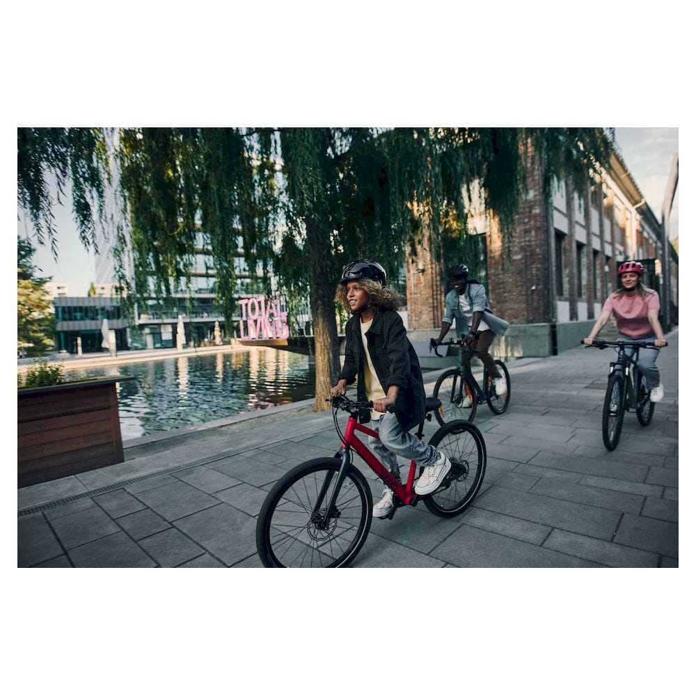 woom EXPLORE er laget for å sykle, utforske og gjenta – med et unikt design for unge syklister. Den rene rammen har svarte komponenter, svarte felger og matte farger, perfekt for aktive barn som vil finne sin stil på sykkel.