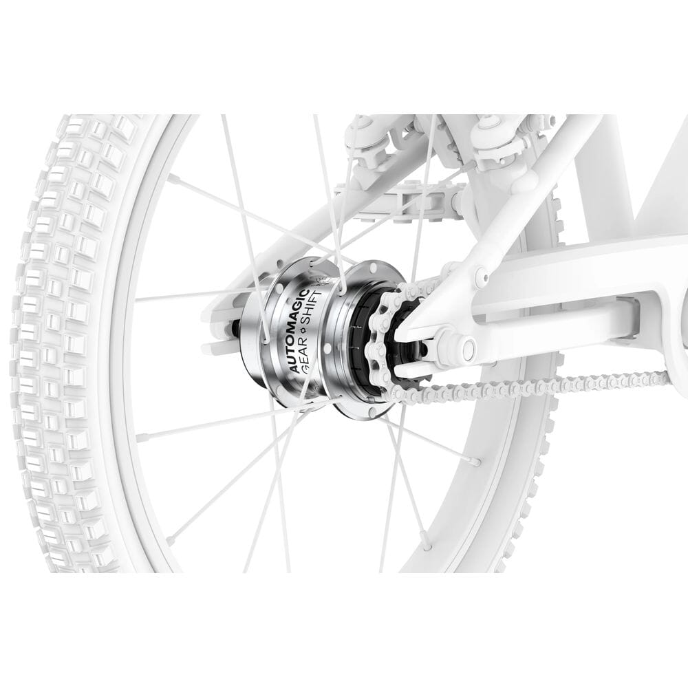 woom GO 3 AUTOMAGIC har et intelligent 2-girs navgir som skifter automatisk når barnet når riktig hastighet. Det gir en enklere og mer naturlig sykkelopplevelse uten behov for å tenke på giring.