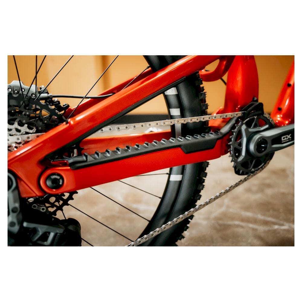 Nukeproof Mega er bygget for å gjøre kjøring og vedlikehold enkelt. Praktiske detaljer støtter hverdagsbruk: fronttriangelet rommer en 750 ml flaske, og det finnes et feste under overrøret for verktøy eller reservedeler, slik at nødvendigheter alltid er tilgjengelig. Rammen gir plass til dekk opptil 2,6” for å holde farten i krevende forhold. For lang levetid benyttes MAX-lager gjennom hele rammen, som gir jevn drift i all slags vær. Service er enkel med tilgjengelig maskinvare, fornuftige unbrakonøkler, lasergravert momentmerking og intern kabelruting for en ren og stille løsning. 3D-gummibeskyttelse på underrør, setestag og kjedestag beskytter kritiske områder mot slag og kjede-støy. Hvert element er nøye vurdert for å skape en sykkel som er rask, funksjonell og holdbar nok for de tøffeste stiene.