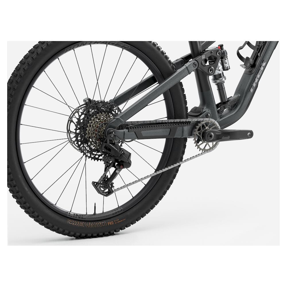 Alpha NEXT Platinum aluminiumramme gir stivhet og holdbarhet, mens Fox Rhythm 36-gaffelen og Performance Float X-demperen sørger for kontrollert demping over røft terreng. Bontrager Line TLR 30-hjul med Tubeless Ready-dekk gir god rulleeffektivitet og grep. SRAM Eagle 70 girsystem sikrer presise girskift under belastning.