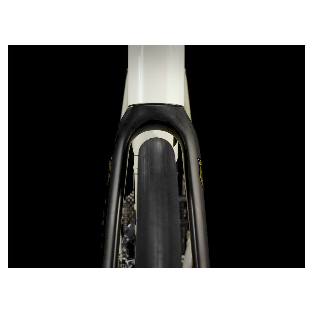 Gaffel Domane AL karbon, konisk karbonstyrerør, innvendig bremseslangeføring, skjermfester, flat mount skivebrems, 12x100 mm gjennomgående aksling