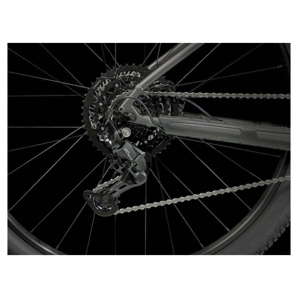 En lettvektsramme i aluminium med innvending føring for å beskytte kablene dine og gjøre sykkelen enda penere, et oppgradert 9-delt Shimano CUES-drivverk, stor utvekslingsbredde, slik at du alltid har riktig gir til terrenget, kraftige hydrauliske skivebremser og en terrengutjevnende dempegaffel med lockout.