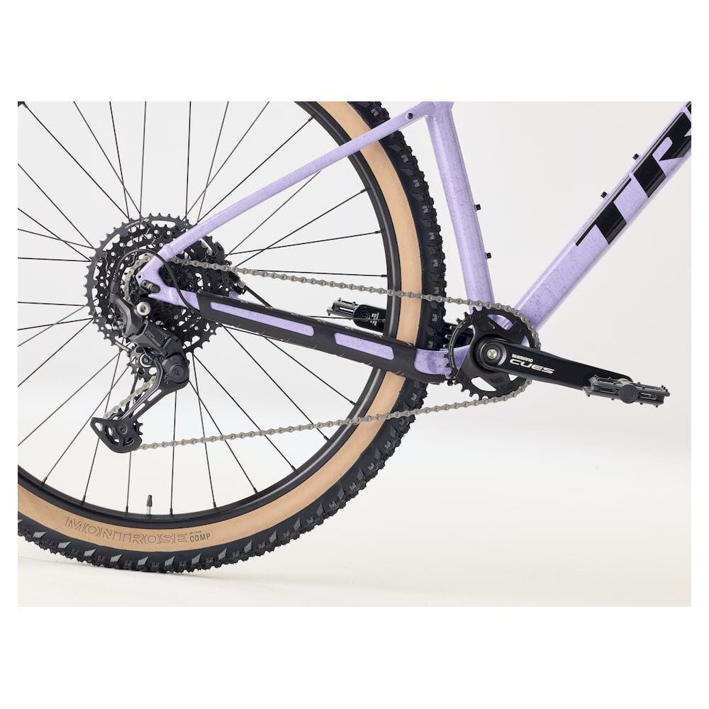 Rammen i Alpha Silver Aluminium har integrerte fester for bagasjebrett og støtte, og gir stabilitet på sti og daglige turer. RockShox Judy dempegaffel med TurnKey lockout og opptil 100 mm vandring gir komfort og kontroll. Drivverket inkluderer Shimano U6000 10-delt girvelger med CUES U6000 GS bakgir, Shimano U4000 krank og LINKGLIDE kassett for jevn giring.